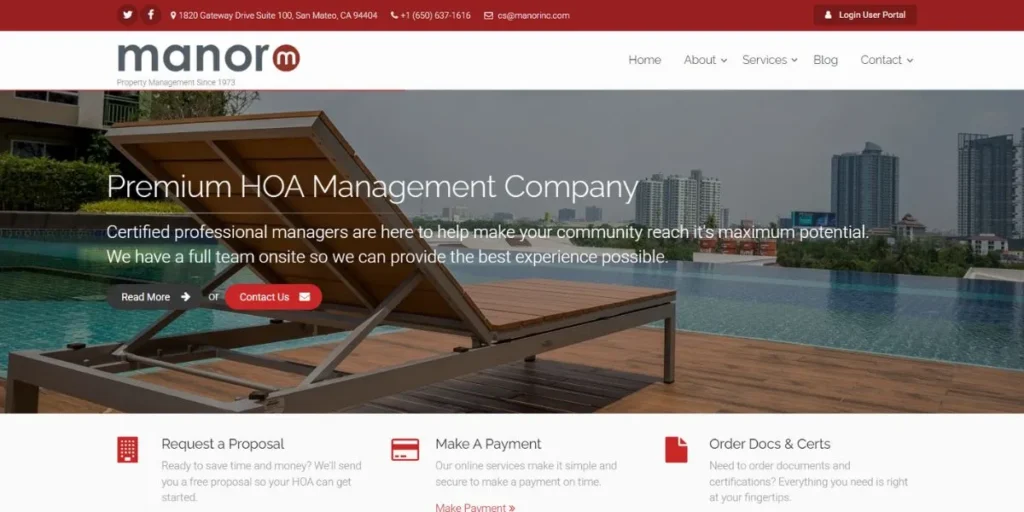 The Manor Association is one of the experienced Property Management Companies in San Mateo specializing in homeowner association management, with extensive experience in managing community properties and multi-unit residential complexes. Their professional team handles board meeting planning, financial management, and architectural review procedures.